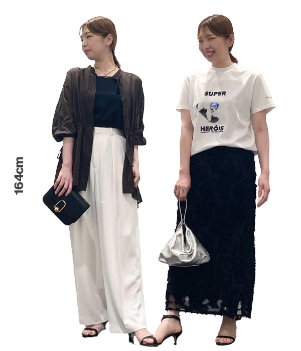 大人が着やすいシックなカラーのシアートップスや、華やかな刺繍スカート。
