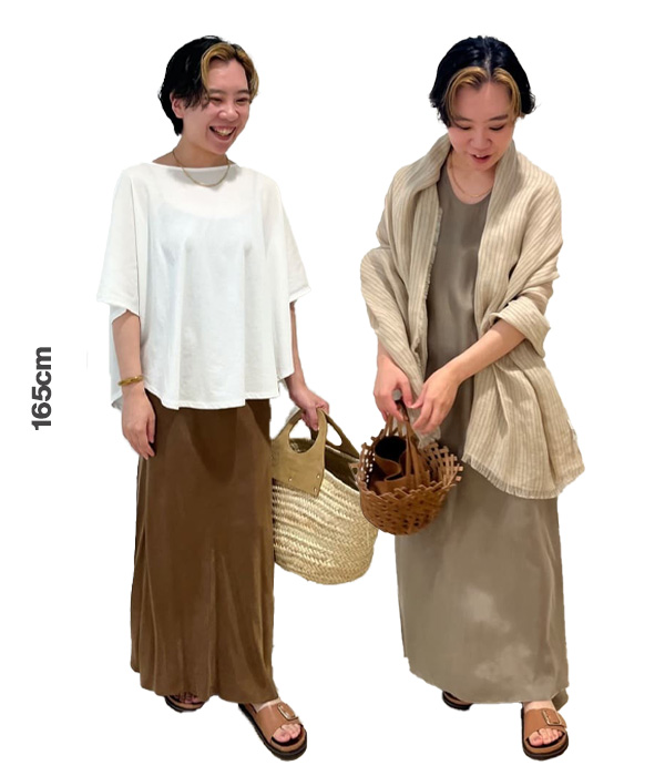 ゆるっとしたサイズのTシャツやストールで、肌見せは極力抑えつつもこなれ感たっぷり。