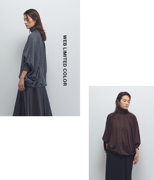 たっぷりとした身頃とキュッとしまったリブのコントラストがエレガントな印象的。