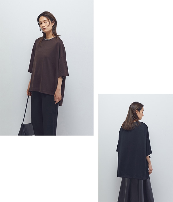 素材は控えめな光沢のウール混のTシャツ素材を使用しており、ほぼ一年を通して快適に過ごせます。