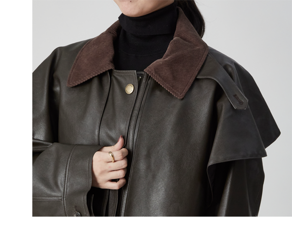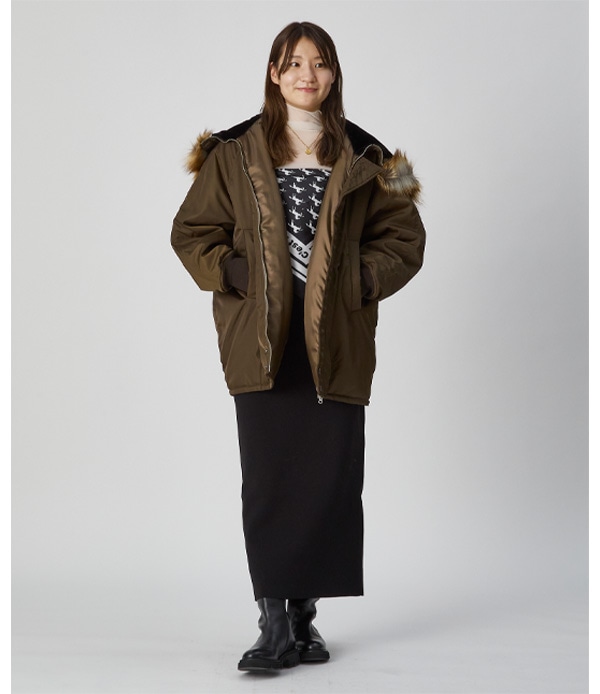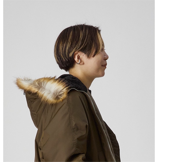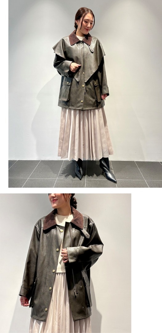 フードは2WAYのため、スカート合わせなどの際は開いていただいても素敵です。