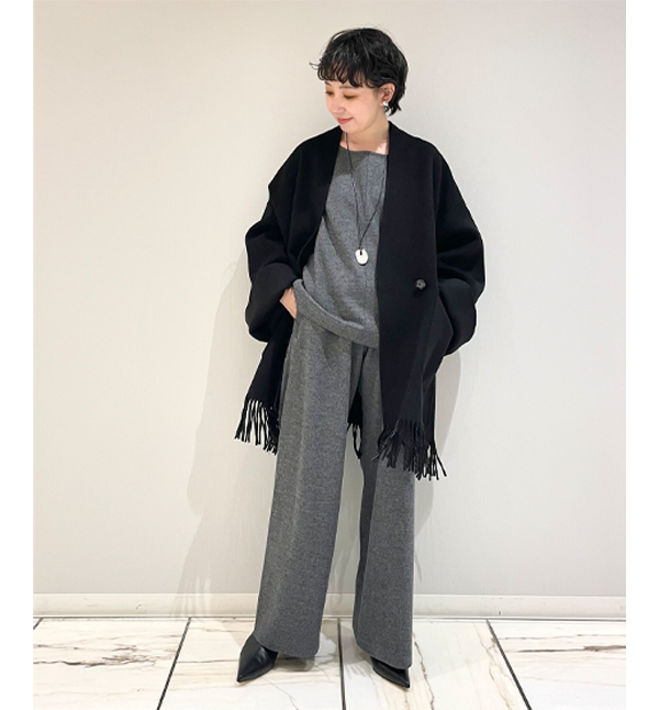 モノトーンで合わせることで、オケージョンでもお使いいただけるスタイリングにしました。