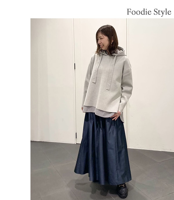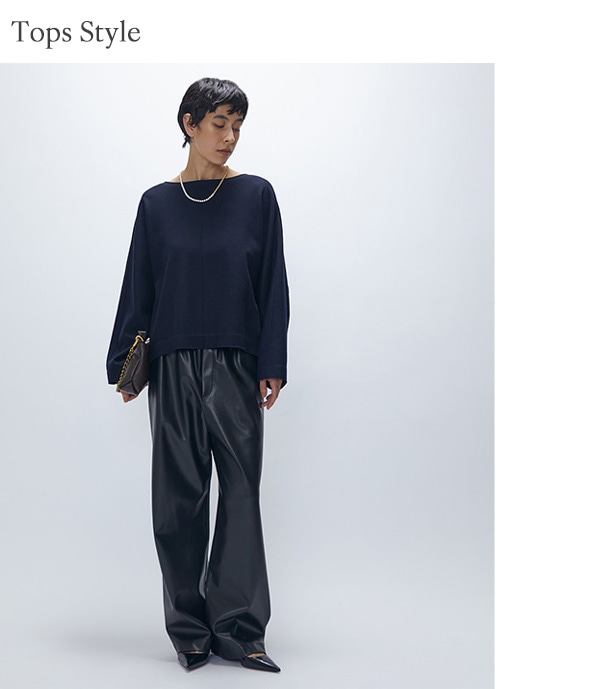 ハリのあるニット素材なので体のラインを拾わずに着こなせます。