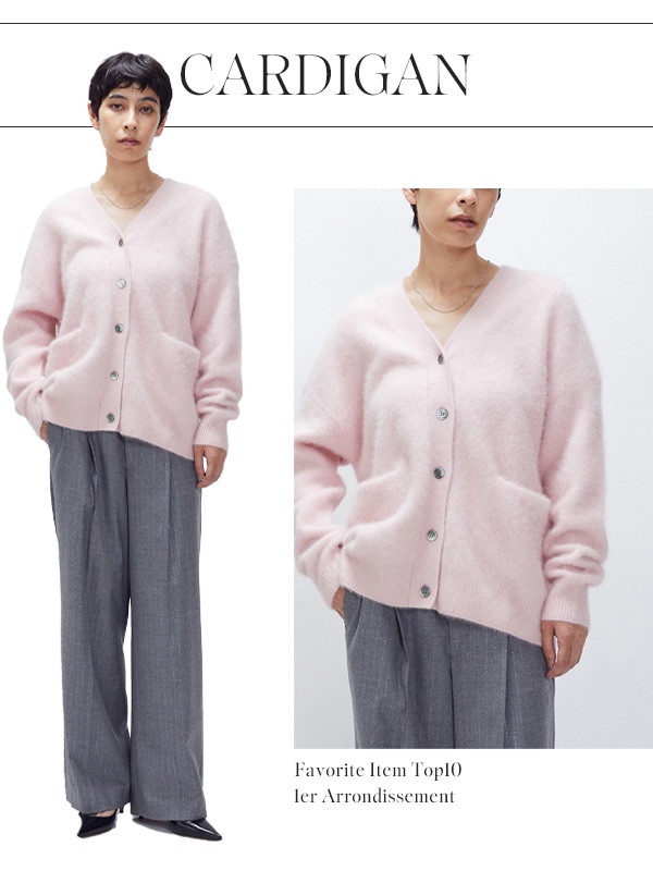 カーディガンでの着用はもちろん、あえてプルオーバー感覚で着用するのがいまの気分。