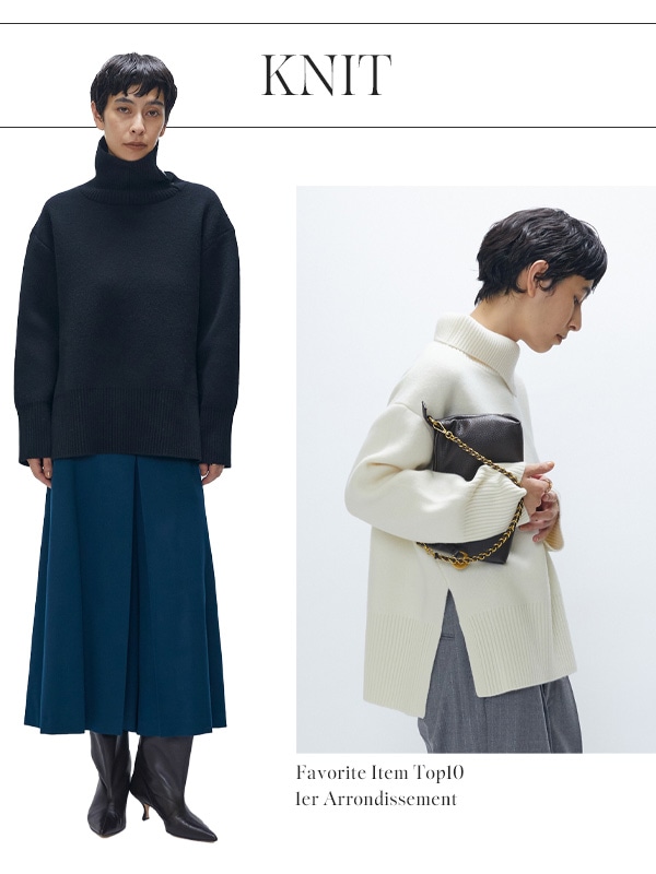 首元のアレンジを楽しめる、人気のウールカシミアタートルニット。