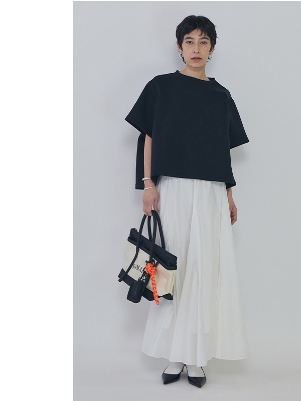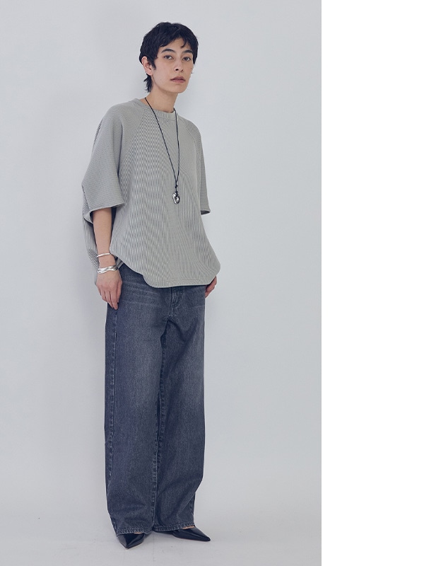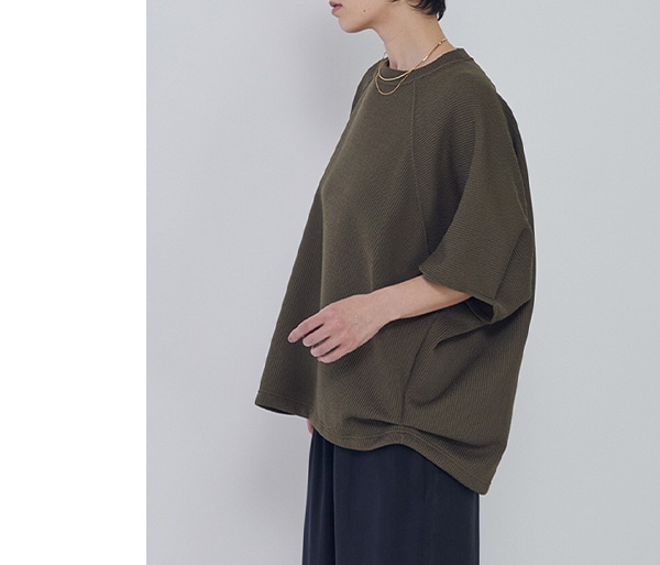 ニットの表情を持ちながら、カットソーのように気軽に取り入れられる素材もポイント。