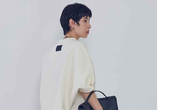 後ろ袖に入れたタックが背中に自然なふくらみを生み、身体から離れるシルエットに。
