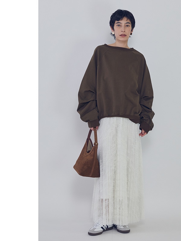 軽やかでボリューム感がありながら、身体にまとわりつかず、動いたときに美しいフォルムが自然に出るのが特長。