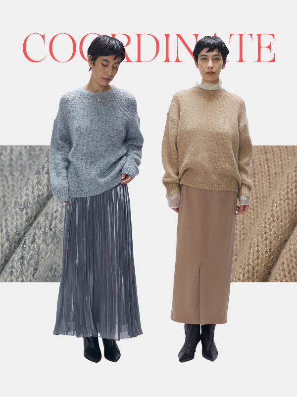 控えめなラメ感のため、艶感のあるプリーツスカートなどとも相性ぴったり。