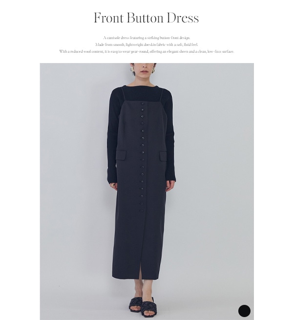 フロントボタンデザインが印象的なキャミソールワンピース。