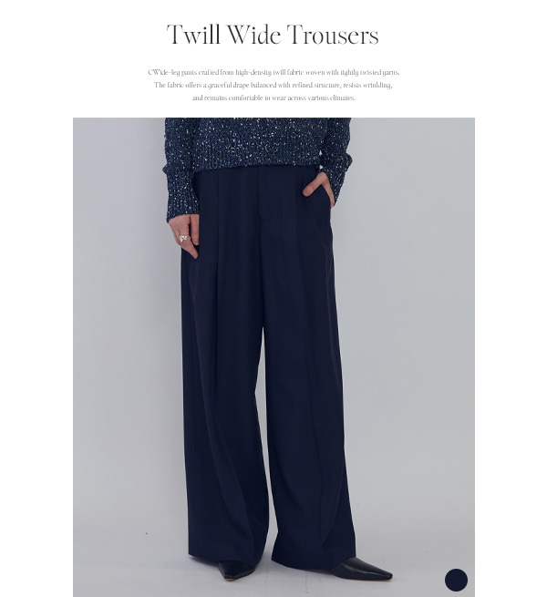 強撚糸を高密度に織り上げたツイル生地を使用したワイドパンツ。