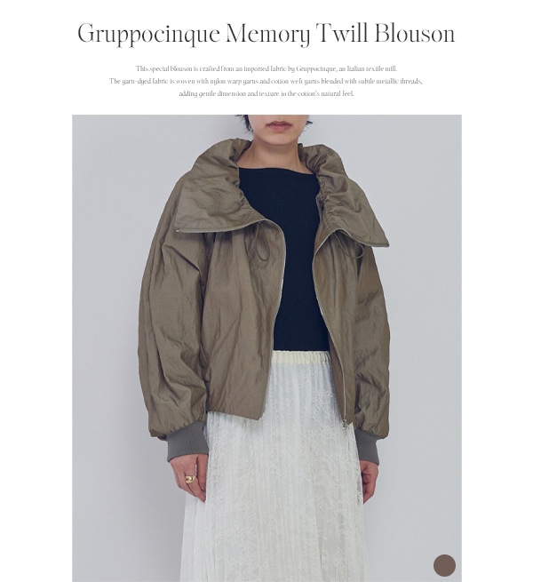 イタリア・Gruppocinque(グルッポチンクエ)社のインポート素材を使用した、特別感のあるブルゾン。