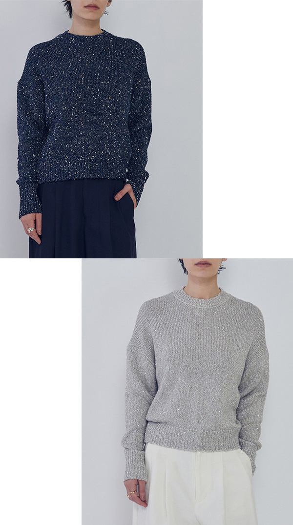 ITALY糸を使用した、華やかな表情が軽やかなニット。