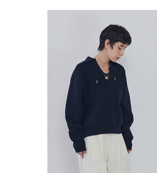 フロントのレースアップデザインが程よいアクセントとなり、トレンドのマリンテイストをさりげなくプラス。