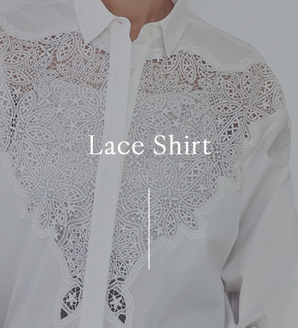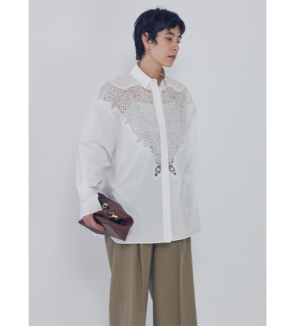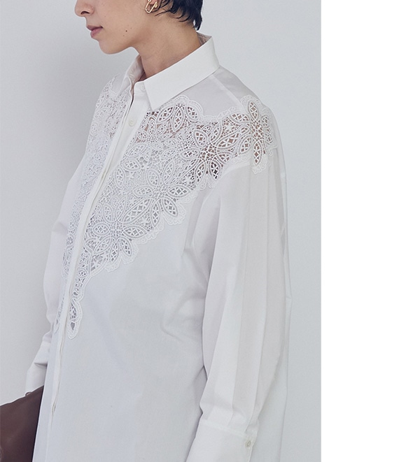 オリジナル図案で起こした、繊細なケミカルレースを贅沢に使用した特別なシャツ。
