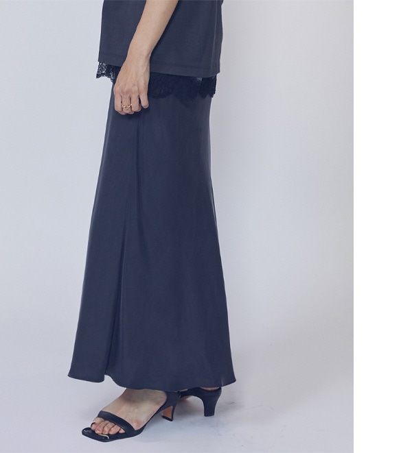 ラフに合わせても決まる、揺れるような落ち感のバイヤスフレアースカートです。