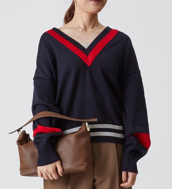 写真の着こなしはカシュクール仕様になっており、コーディネートの幅がぐっと広がるのもポイント。