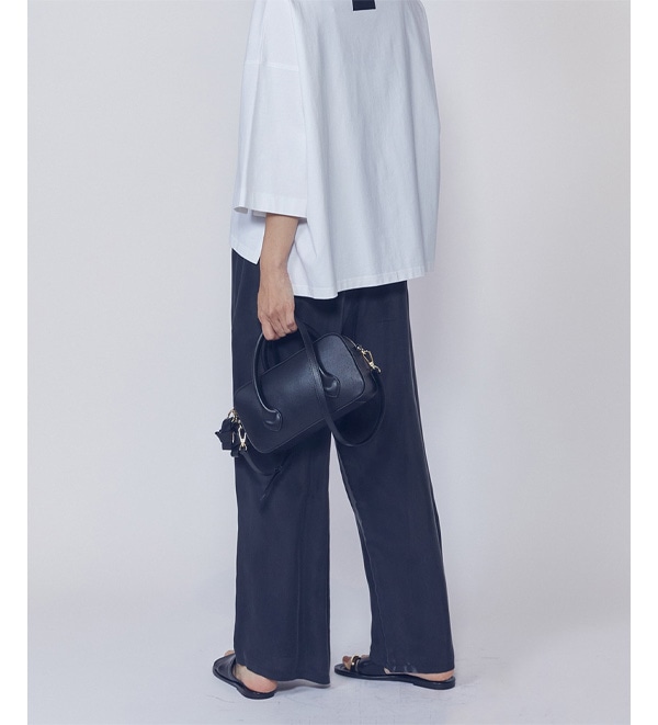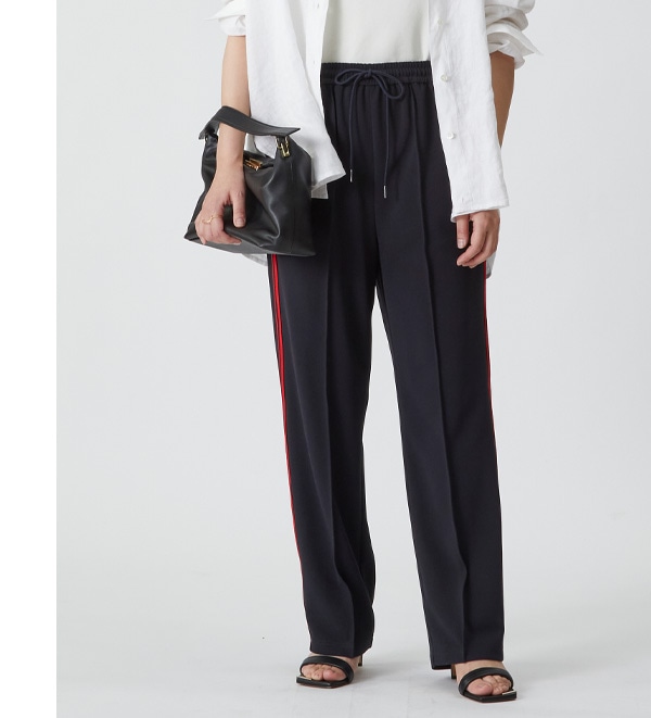 布帛の様に見えるジョーゼットジャージの素材を使用し、緩めストレートラインのトラックパンツに仕上げています。