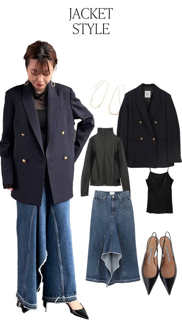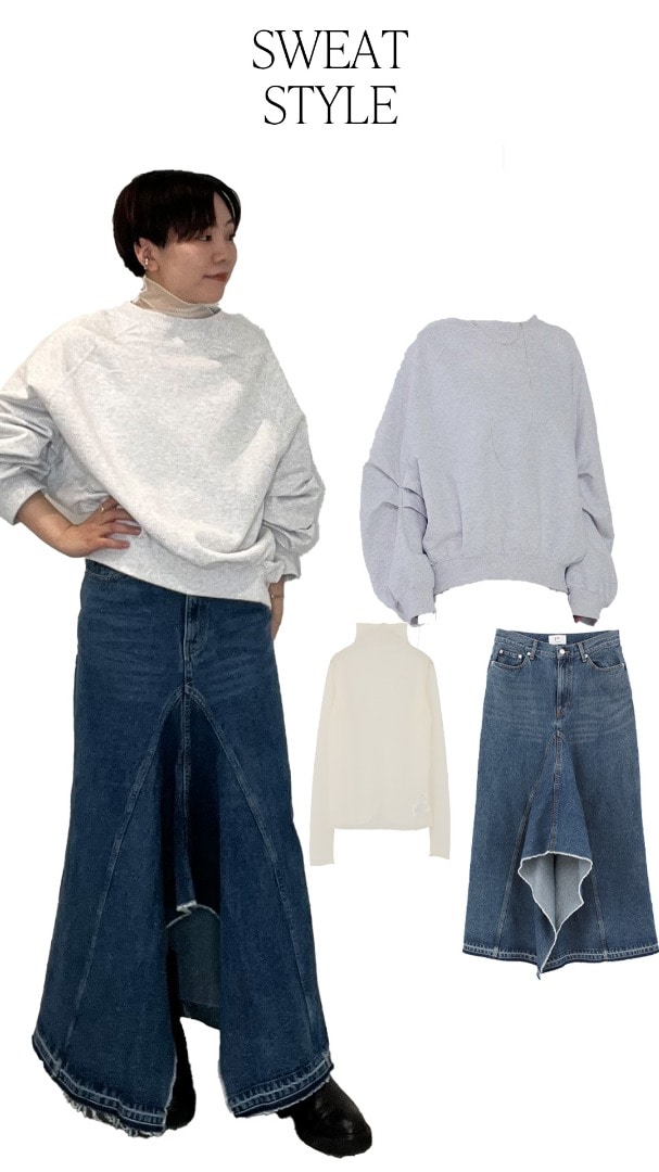 シアーハイネックを重ねることで軽やかさを意識したデニムスタイル。