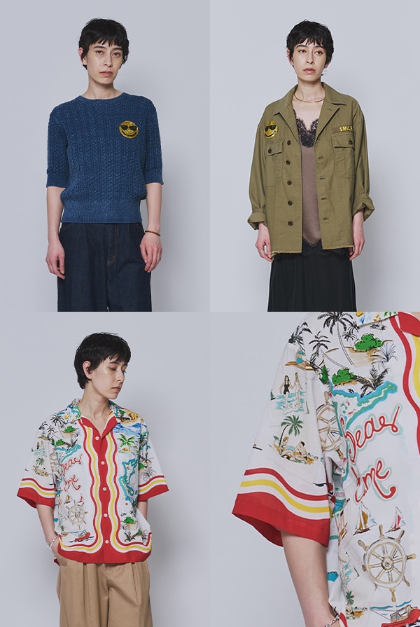 スマイルマークやイタリアプリントが華やかなアイテムも。