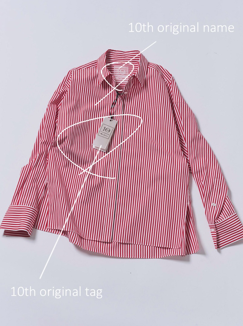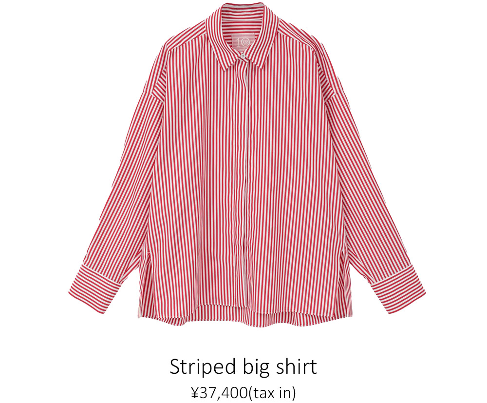3月の10周年オリジナルネームが添えられたアイテムは春を感じるツイードブルゾンとスカート、鮮やかなストライプシャツ、遊び心の効いたプリントスカートの4型。