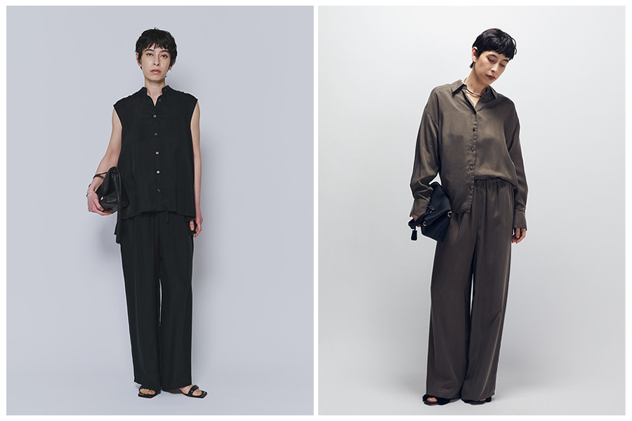 程よい光沢感とスラブ感のあるテンセルリネン素材を使用したシリーズ。