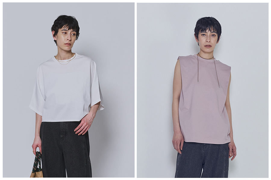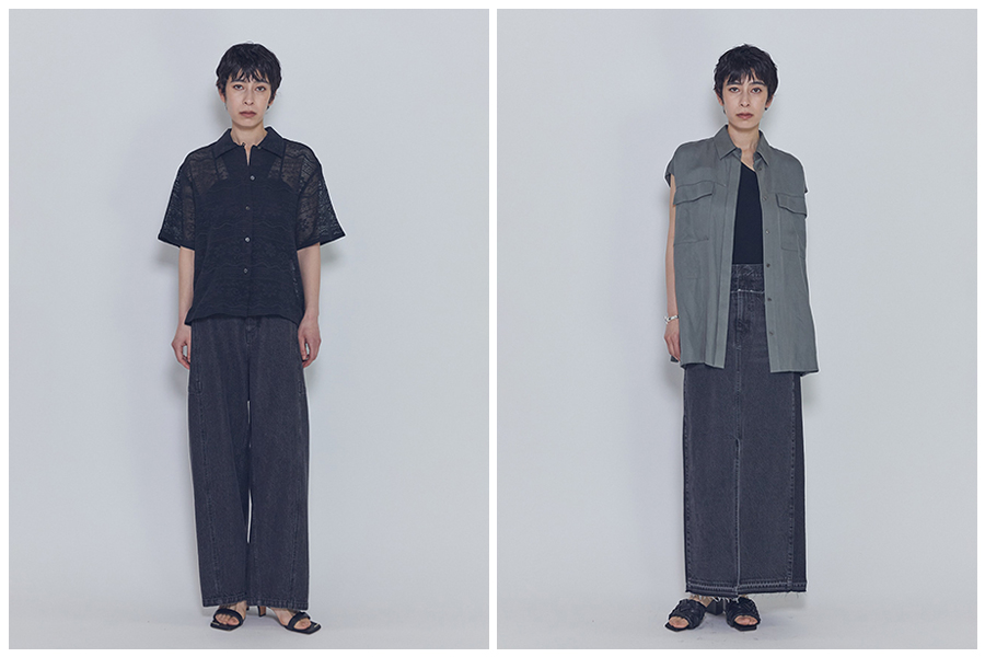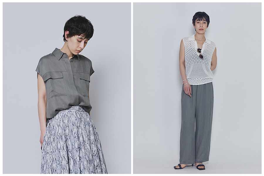 レギュラーカラーシャツ・ノースリーブシャツ・イージーパンツ・マーメイドスカートの4型です。