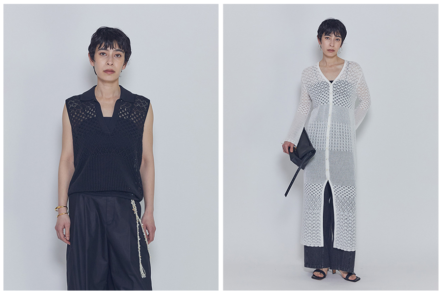 コットン糸を使用し、レースのような繊細な柄をいくつも切り替えながら編み立てたニット。