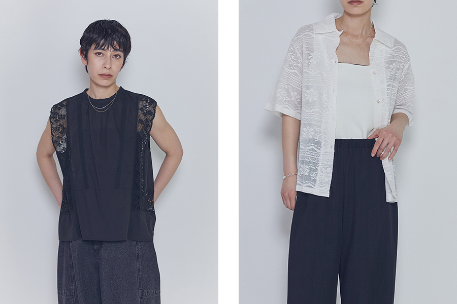 シャツタイプはコットンレースをふんだんに使用し、シンプルながら華やかな印象を与えます。