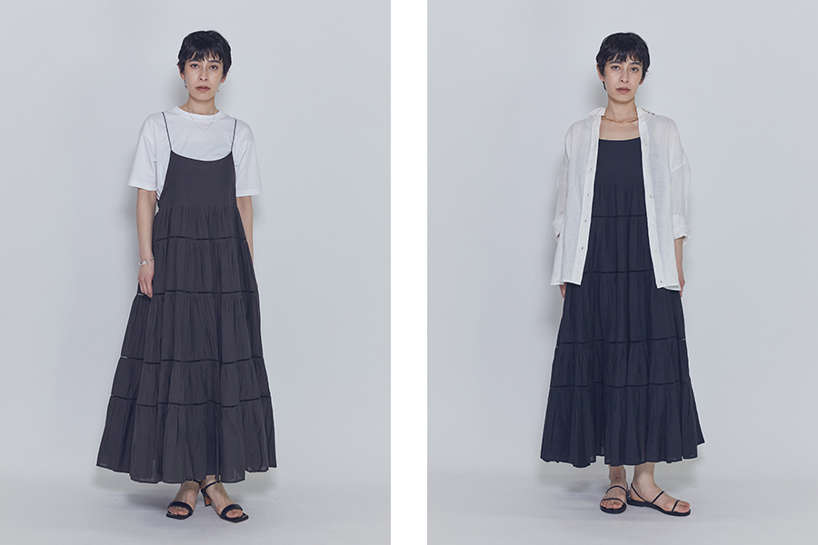 ティアード切り替えがふんわりとしたボリュームを生み、さりげなく華やかな印象に導きます。