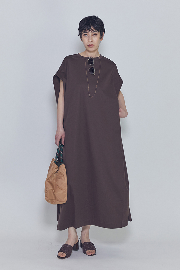 直線的なストレートボディに、内側へ折り込まれたアームホールが印象的なワンピース。