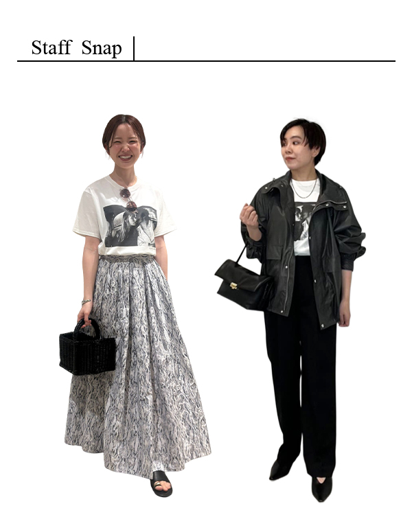 プリントの存在感を活かしながら、合わせ方次第で異なるムードを描けるのが魅力。