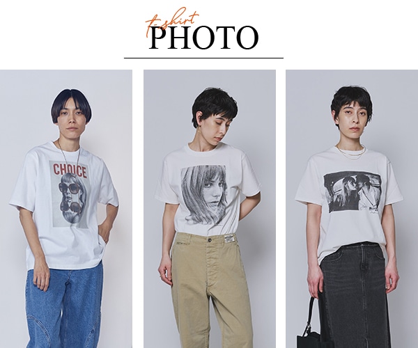 モノトーンメインのフォトプリントを効かせることで、ホワイト1枚のシンプルさにさりげないニュアンスをプラス。