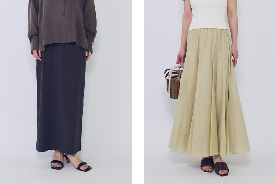 オフィスに馴染むすっきりとしたデザインから、軽やかに広がるギャザースカートまで、気負わず取り入れられるラインナップ。