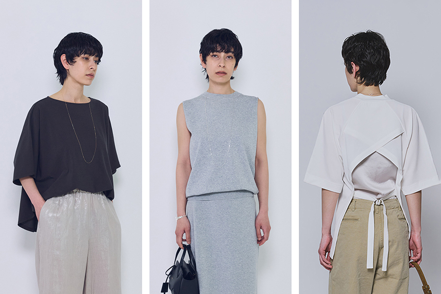 カットソーからニットまで、構築的なデザインをウォッシャブルで楽しめるラインナップ。