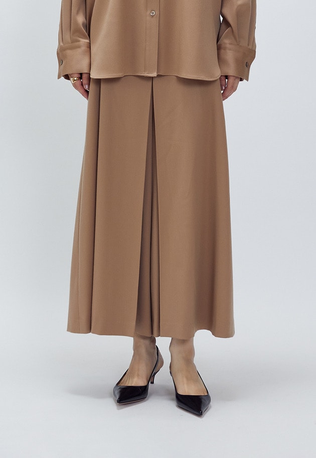スカート見えするキュロットパンツに、上品な光沢とリバーレースが特徴のキャミソールをビスチェとして合わせてみました。