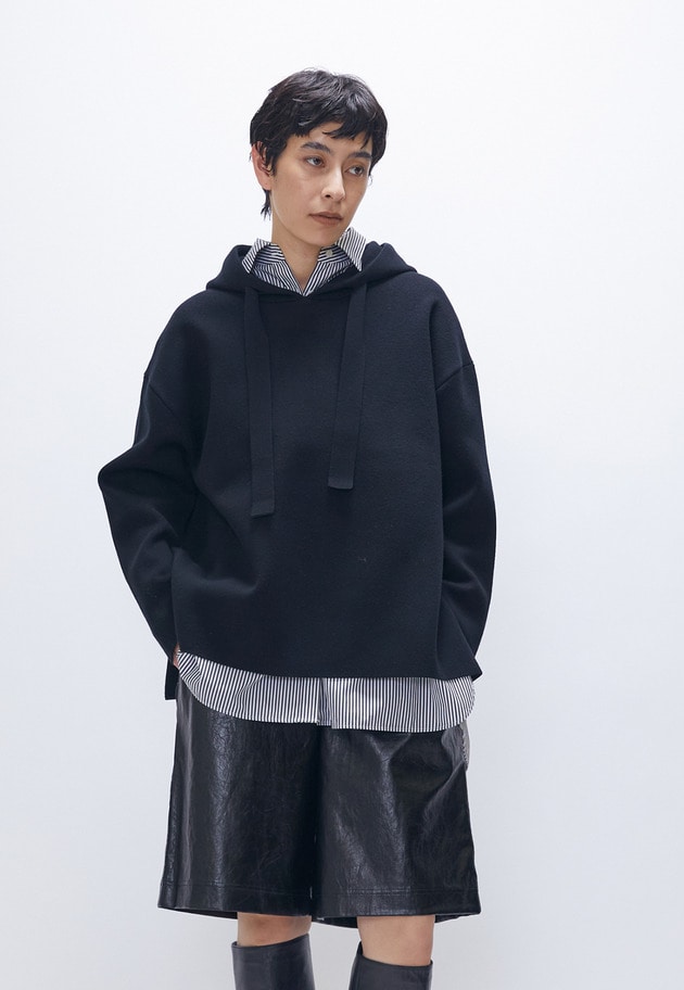 ウールコットンスムースニットフーディー