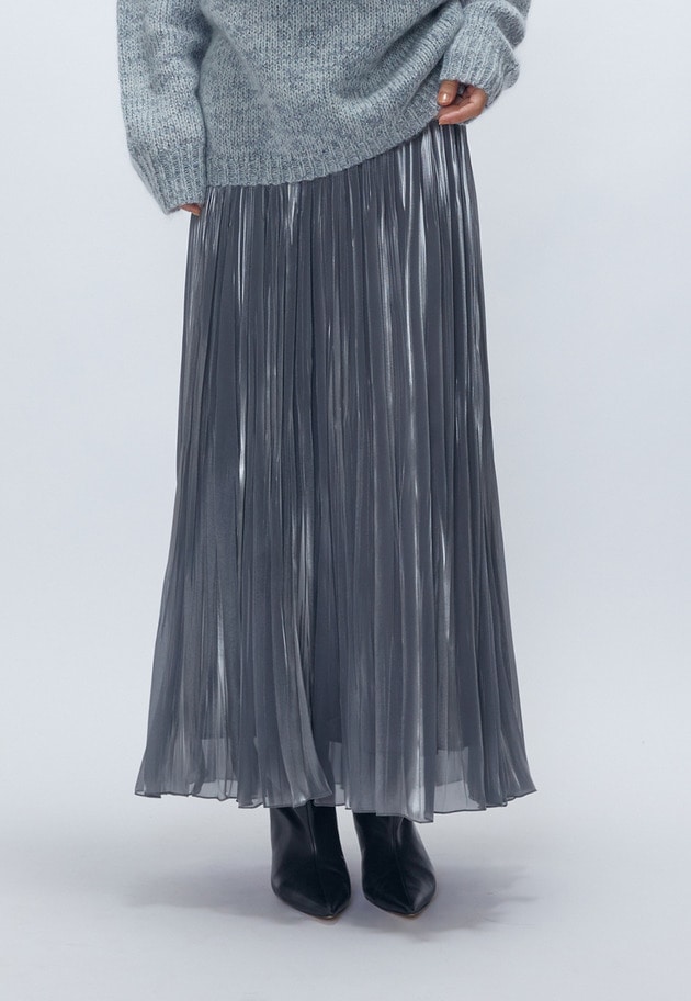 左脇のスリットが深めに入っているのでプリーツスカートと合わせてフェミニンコーデに。