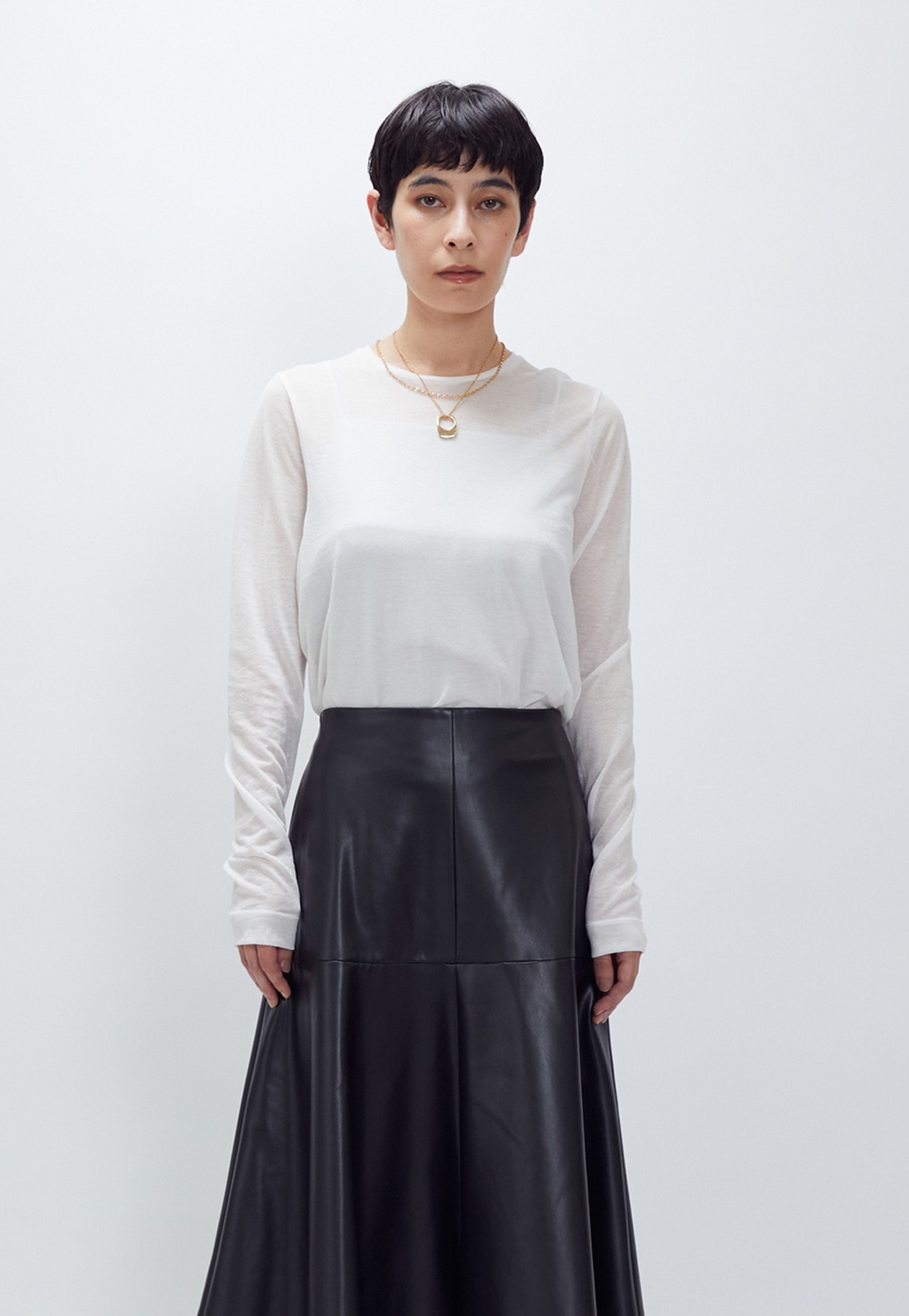 ニットカーディガンやニットベストのインナー使いにおすすめしたい、程よいフィット感のあるサイズ感です。