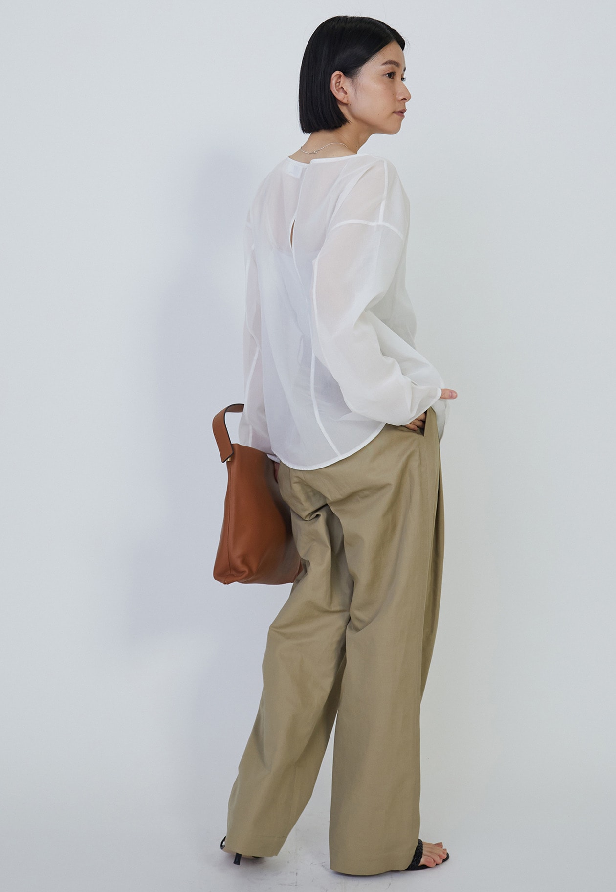 ふわっと空気を含ませる、ゆるさのあるフォルムが万能に使えるクルーネックブラウス。