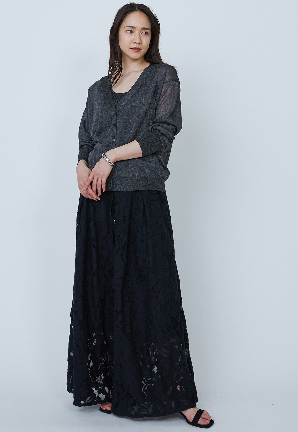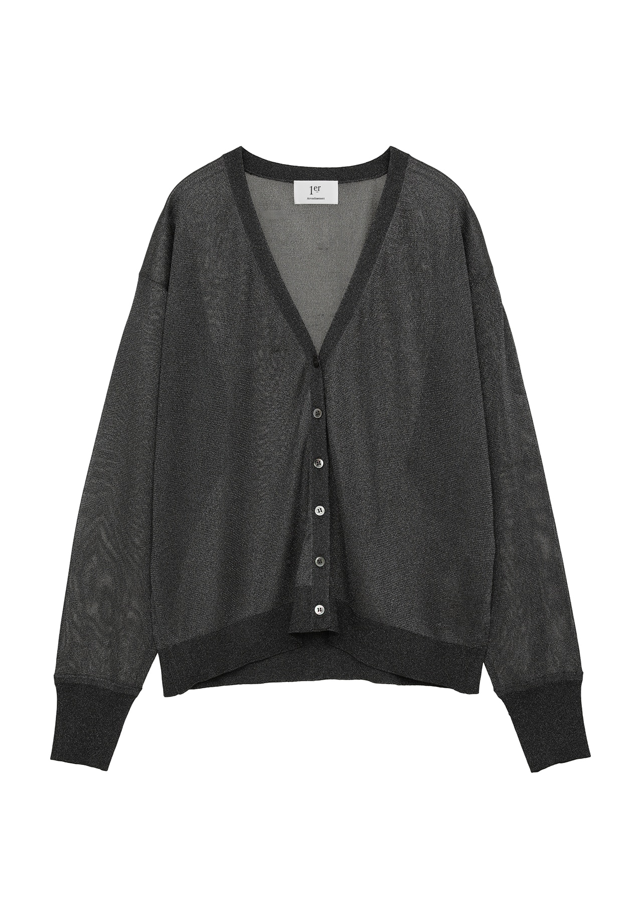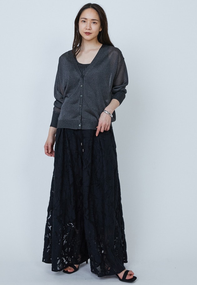 光沢がリッチなメタル糸を使用した、ベーシックカーディガン。