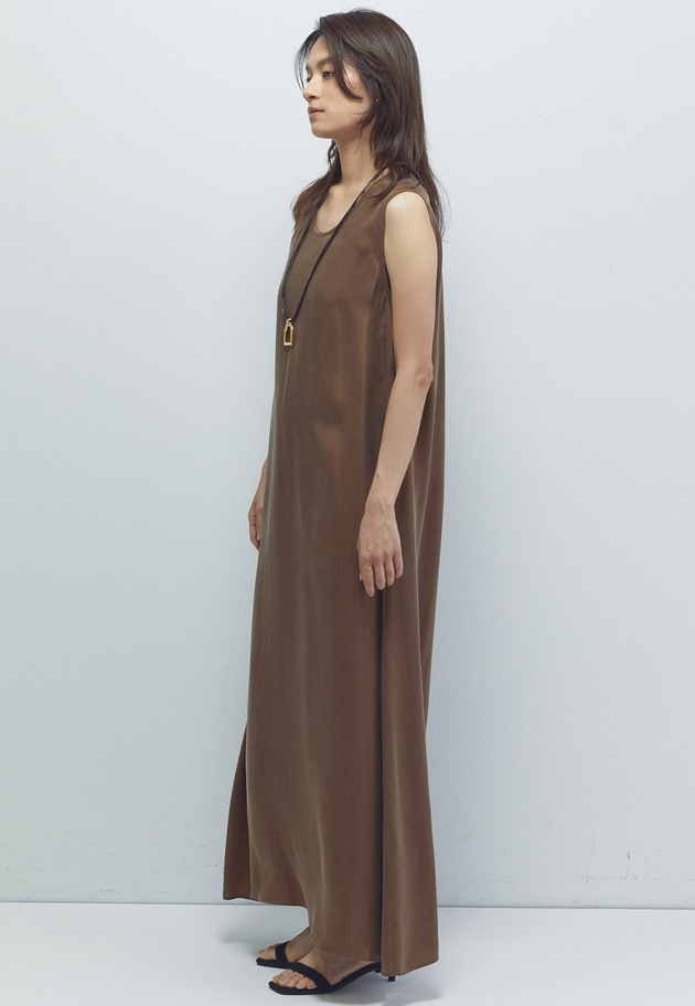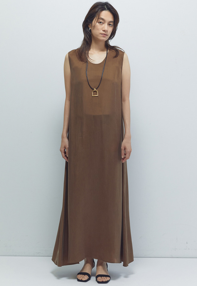 流れるような落ち感とドレープ感が魅力のAラインのノースリーブワンピースです。