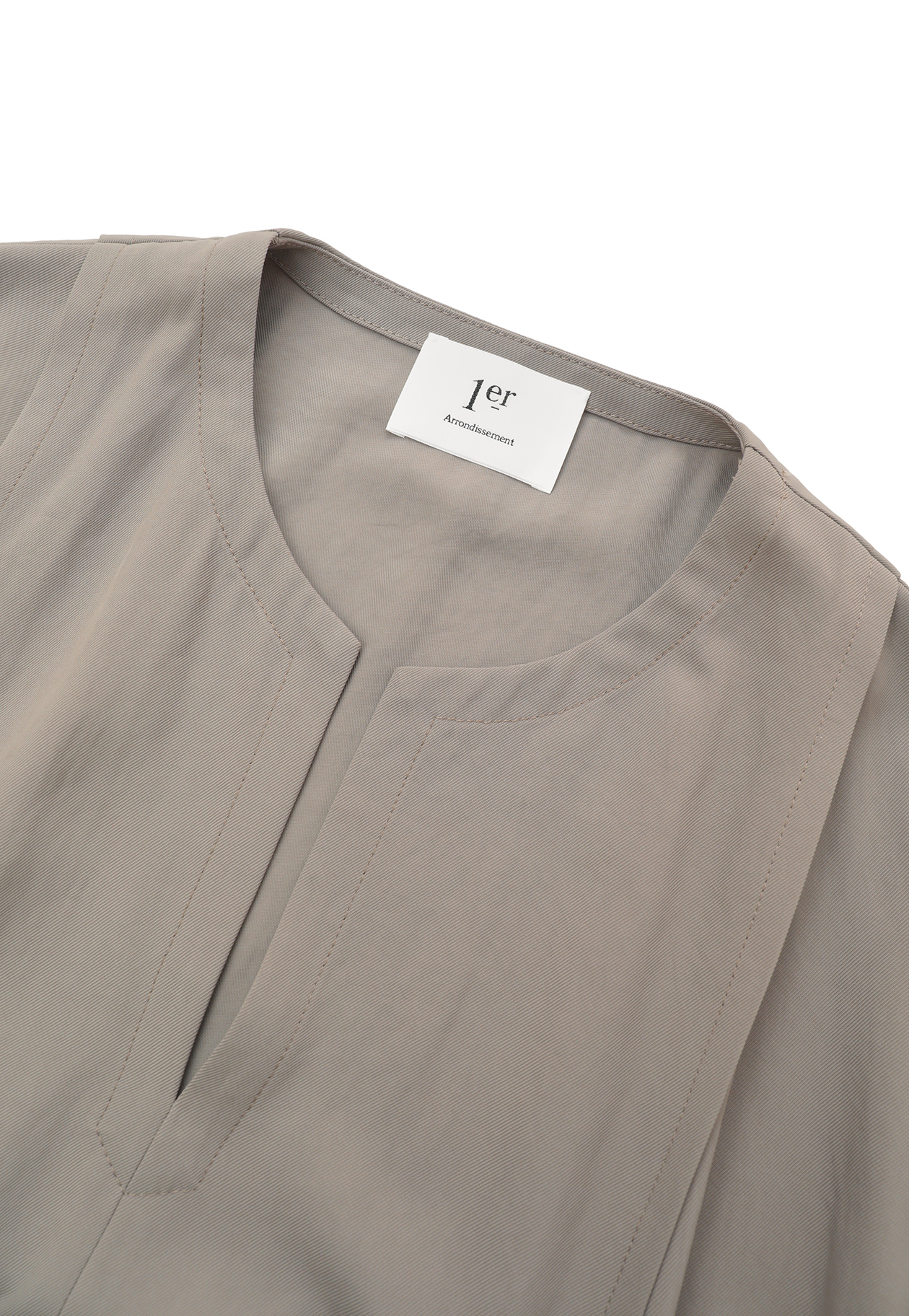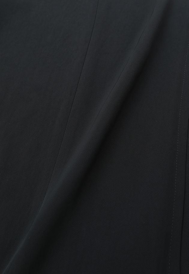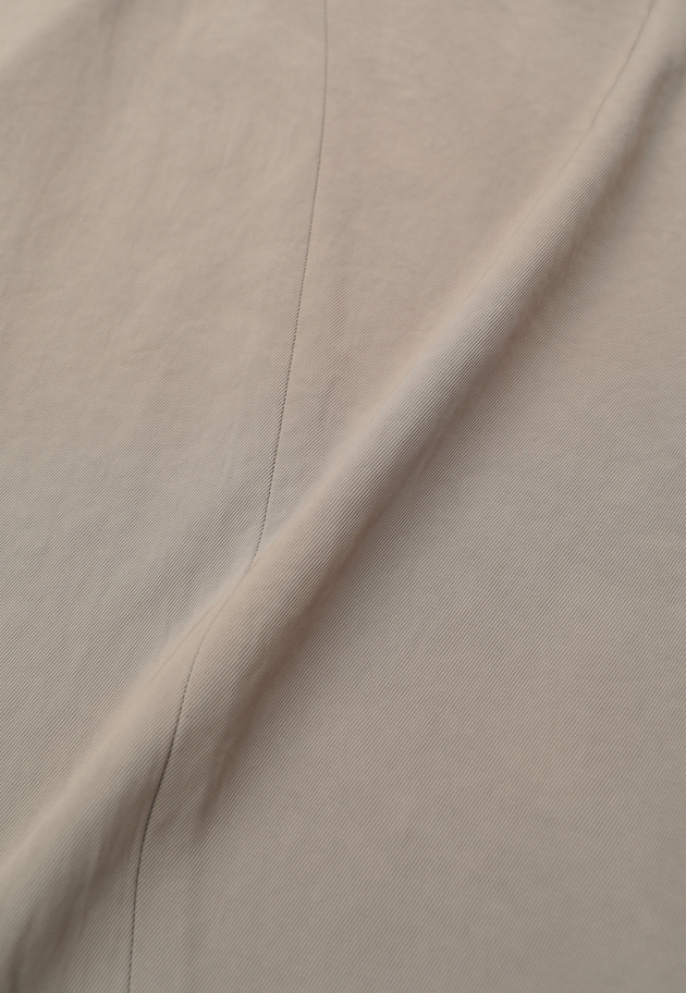 トリアセテートのリライム加工(生地に柔らかさとナチュラルなシワ感を付ける加工)を施し、風合いを柔らかくすることで落ち感を出した素材を使用。
