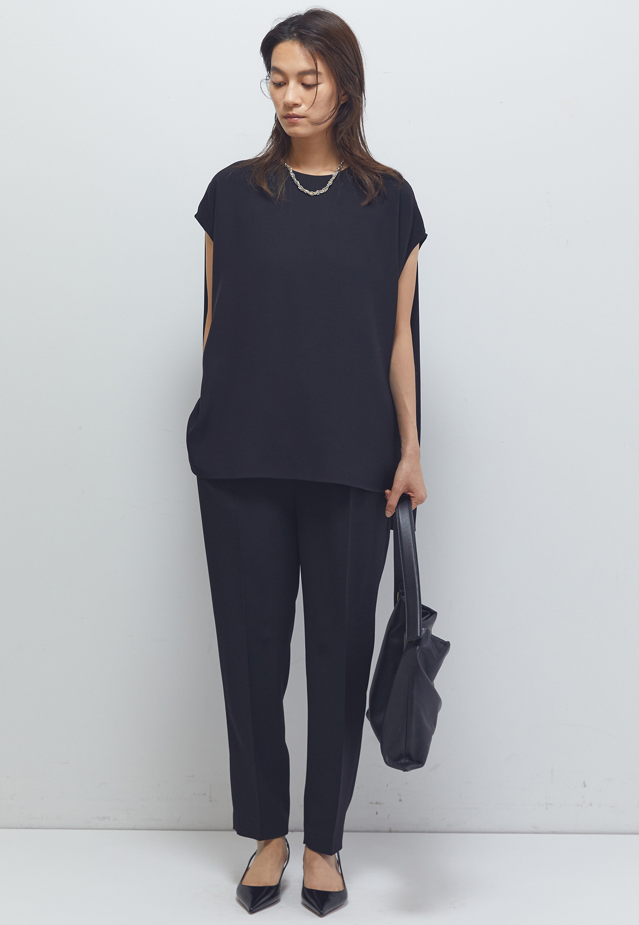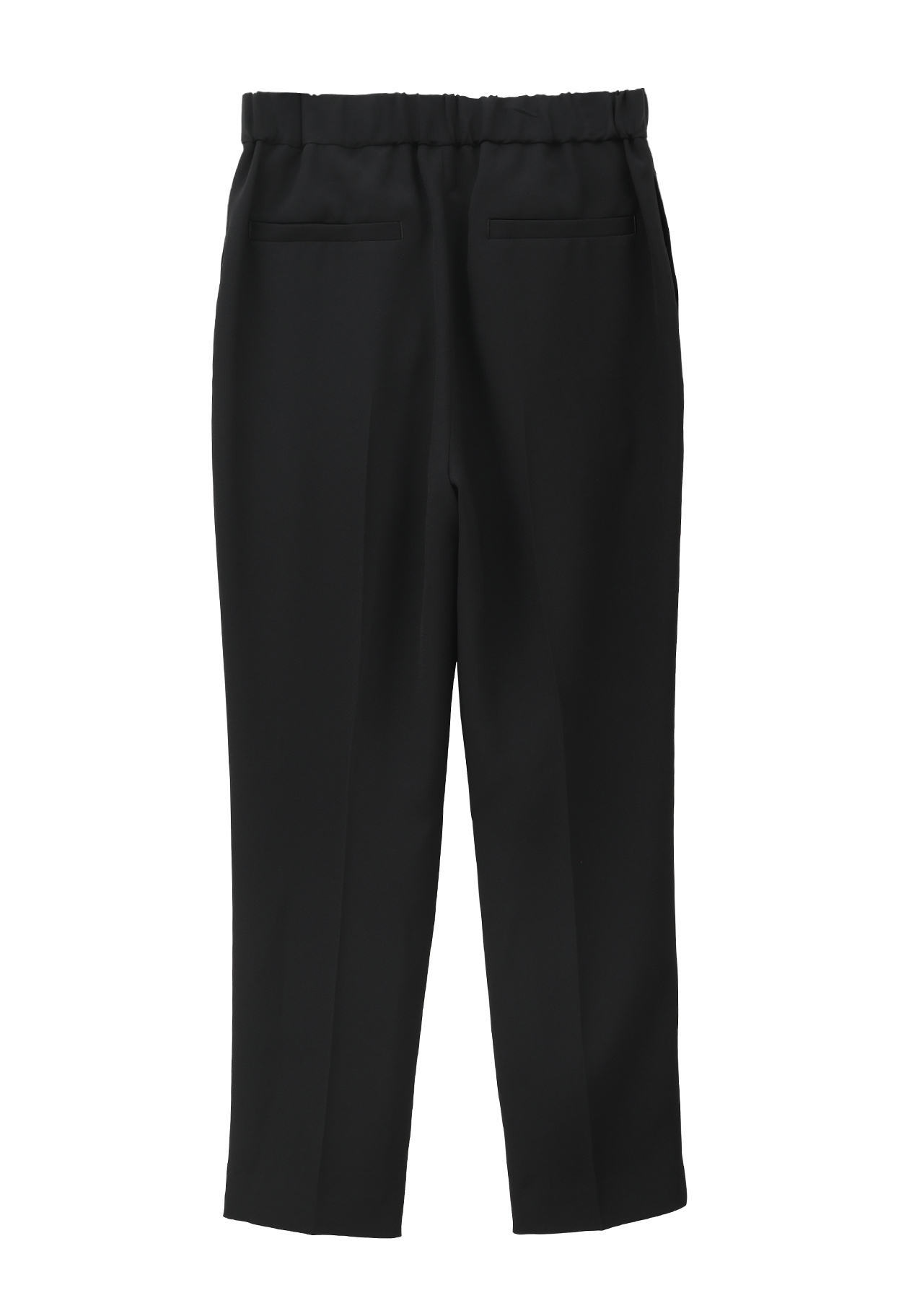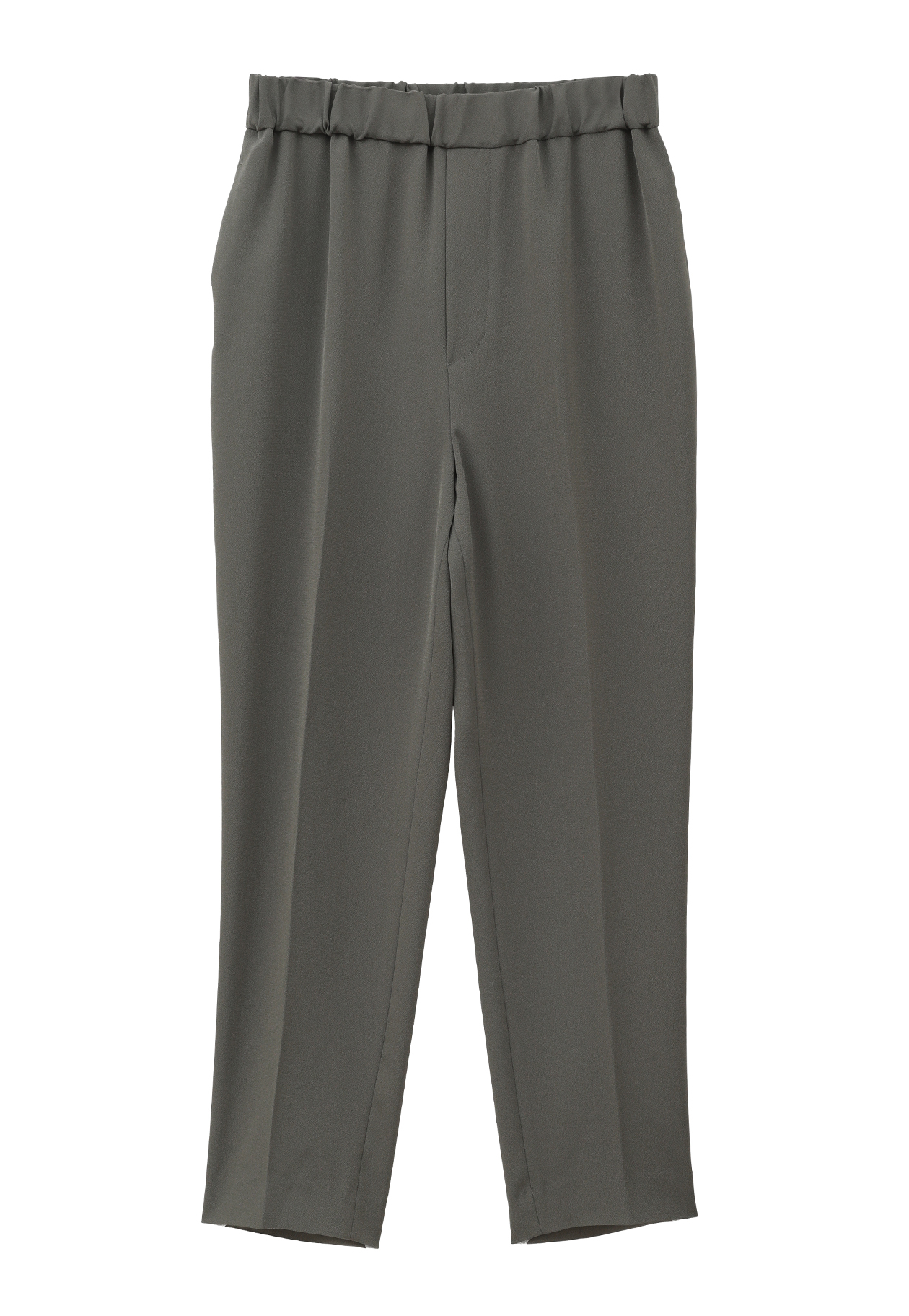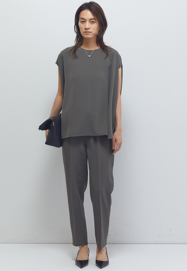 すっきり見えるテーパードシルエットのジョーゼットパンツ。
