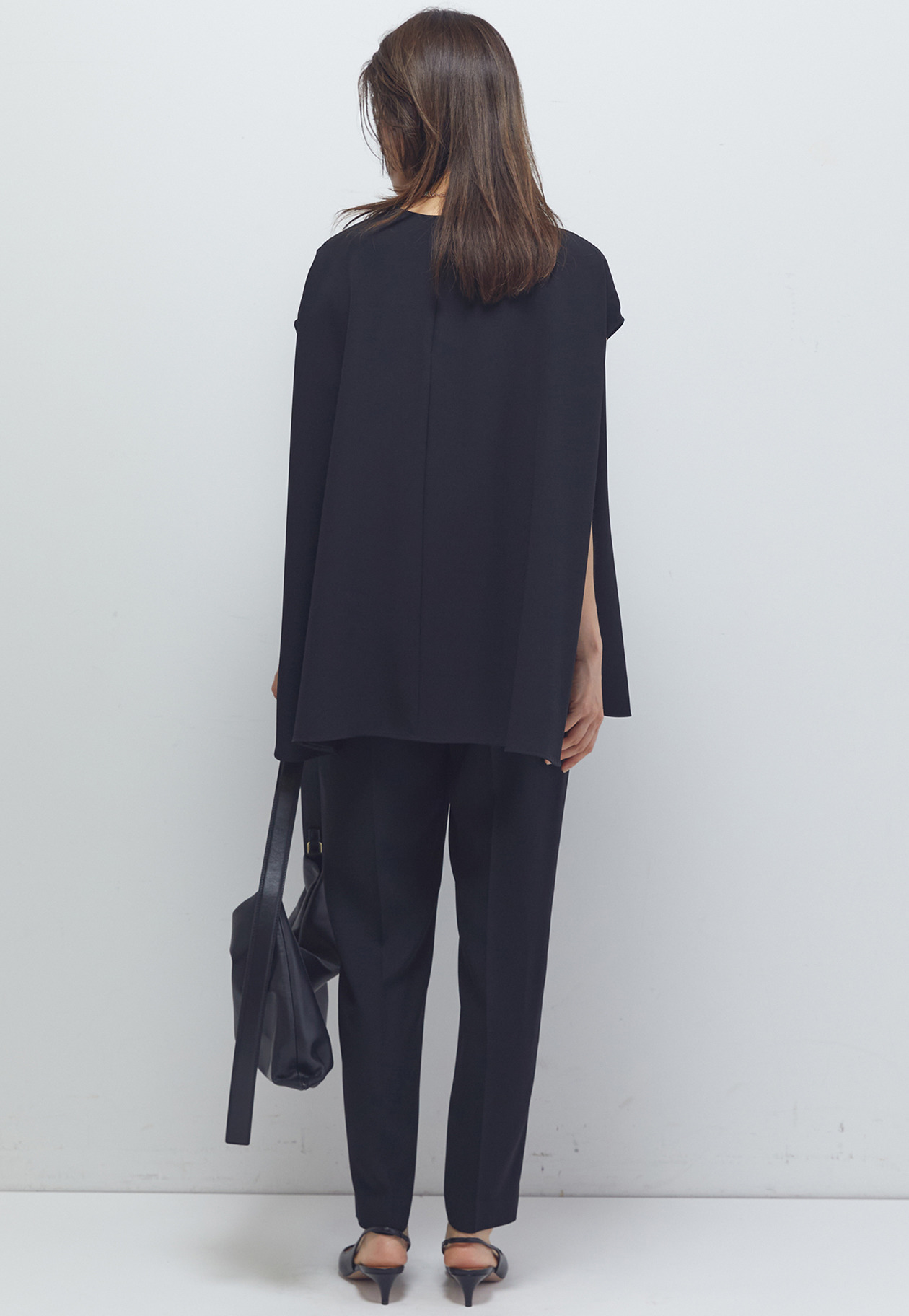 上品な光沢感とドレープ性、ふくらみ感あるエレガントな印象のバックサテンの素材を使用。