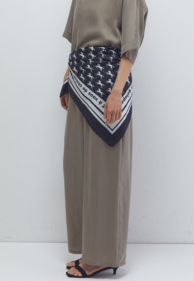 サイズ感:床に付かない程度の丈感でワイドシルエット。