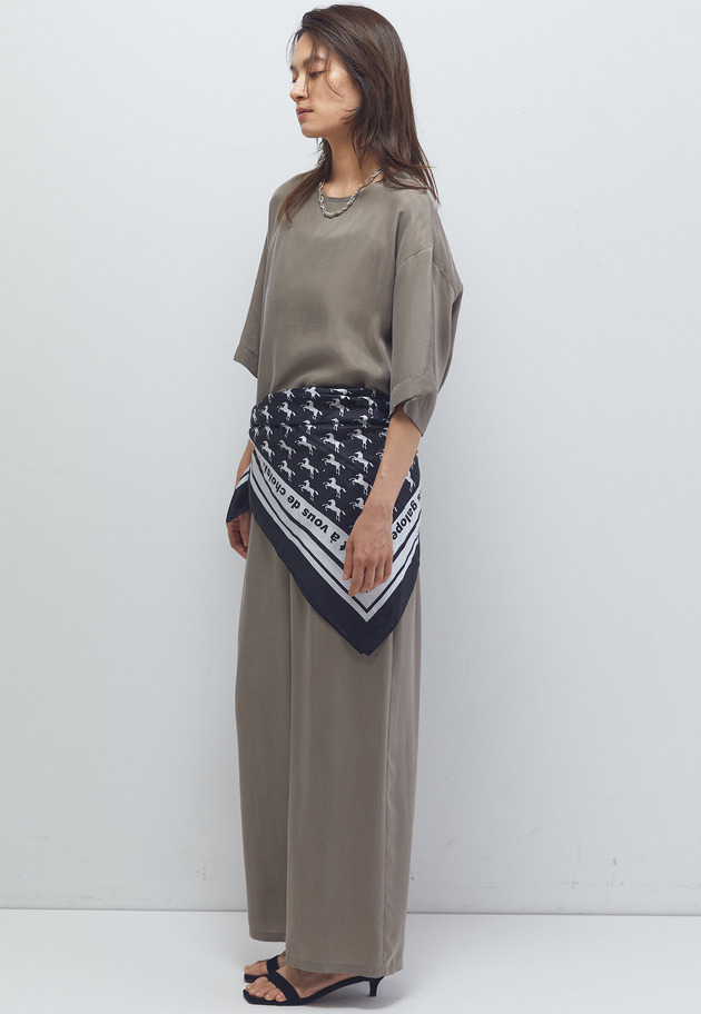 マットな光沢ととろみのあるキュプラの生地を使用。
