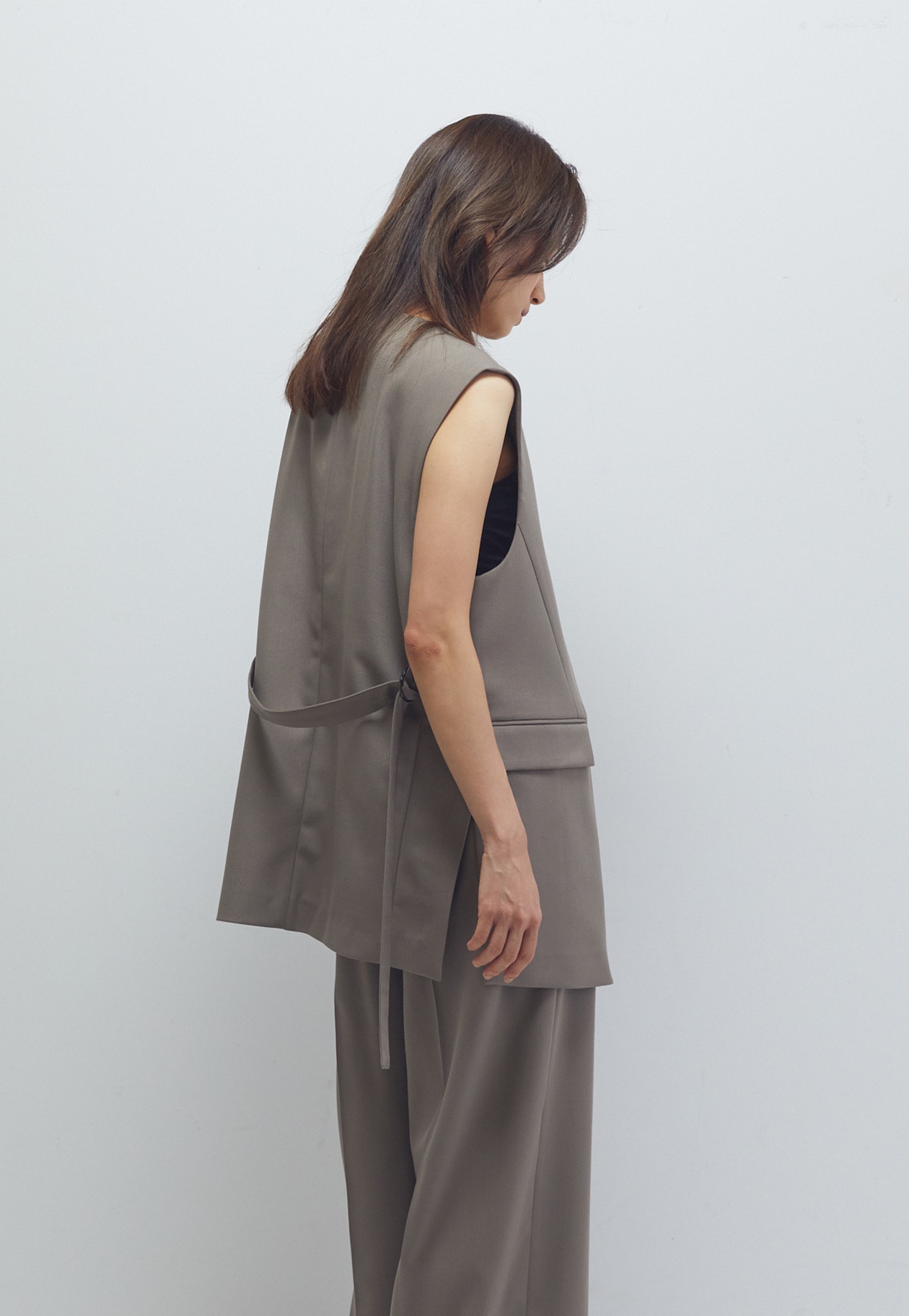 後ろにベルト付いているので、前を開けて着用した際の調整も可能です。