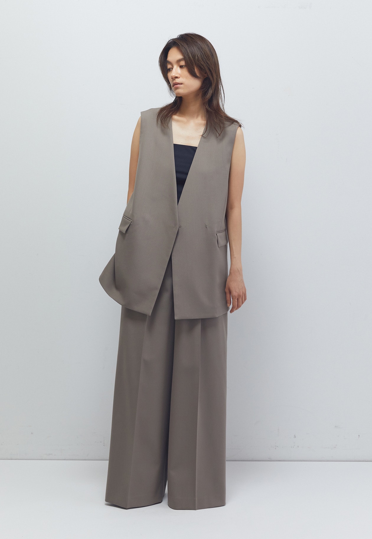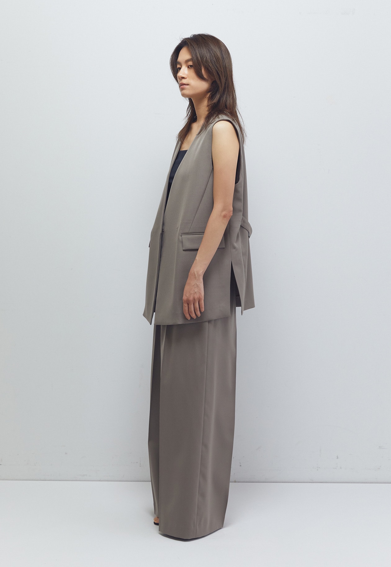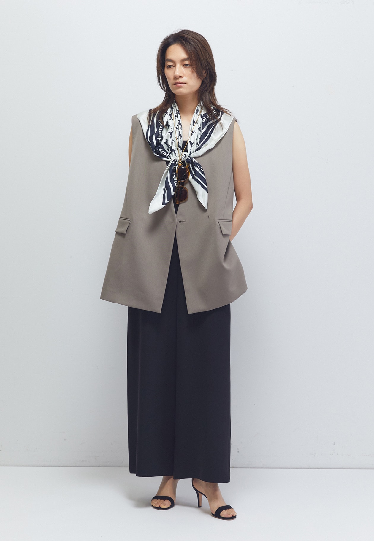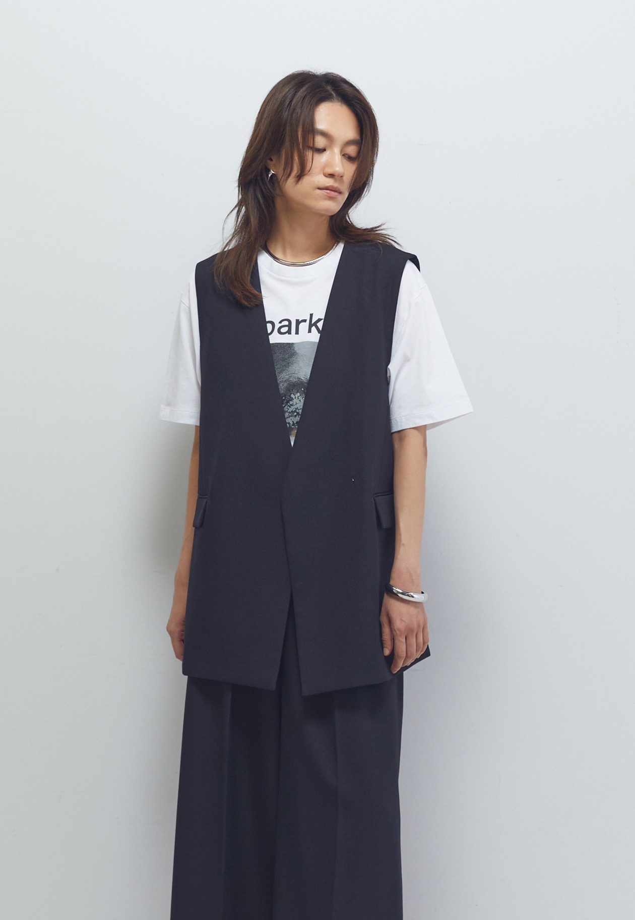 マニッシュな印象に導いてくれるノーカラージレ。