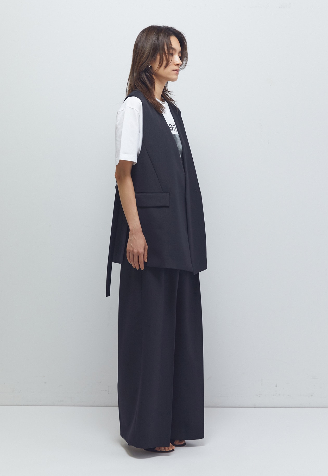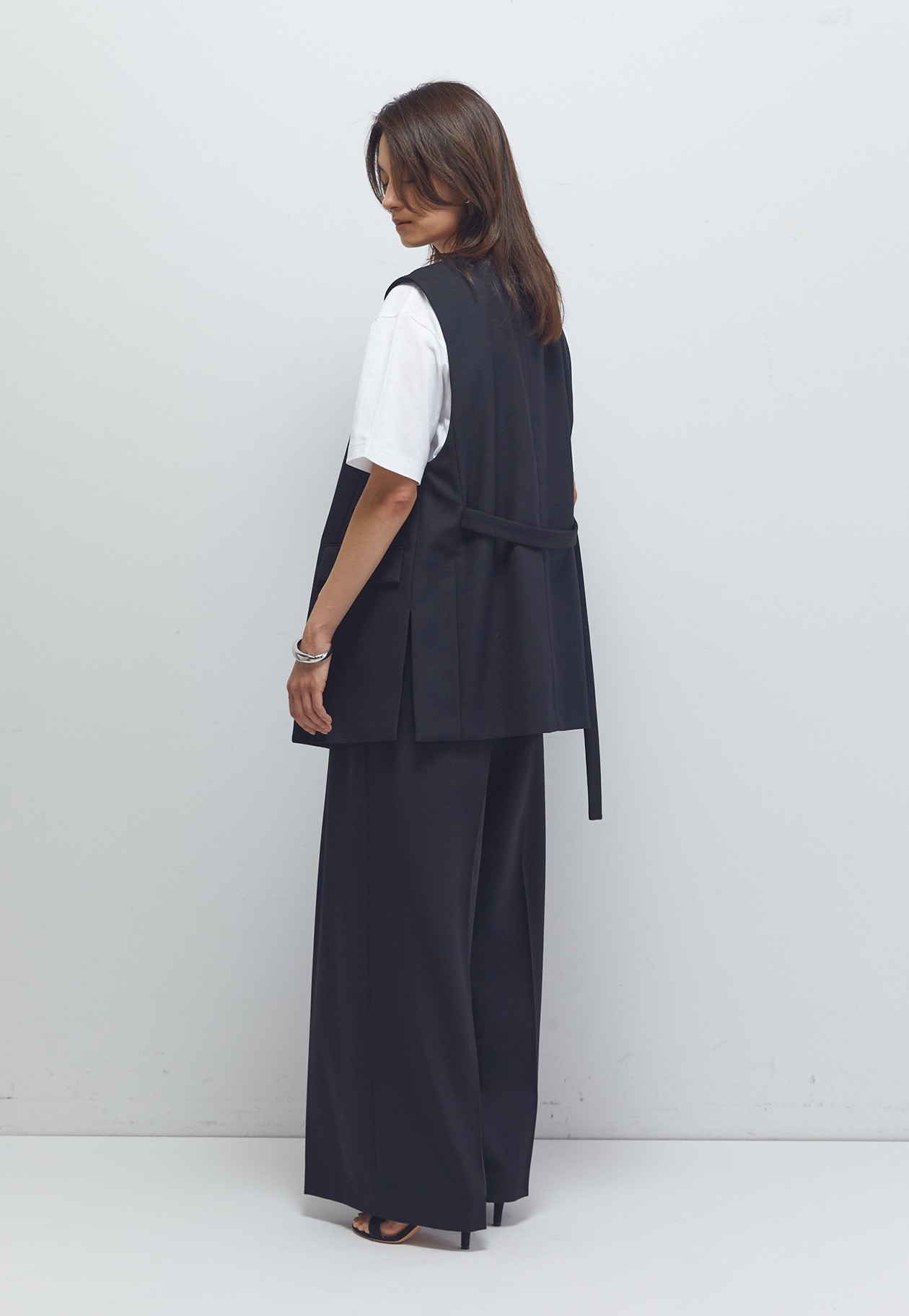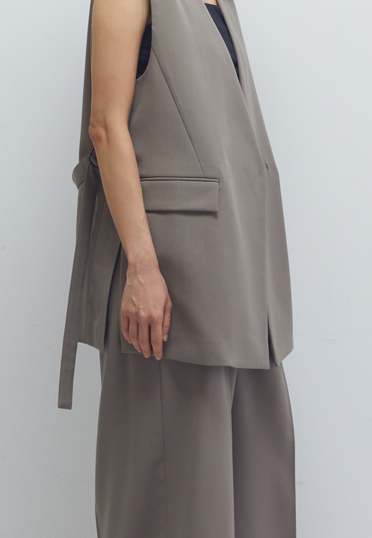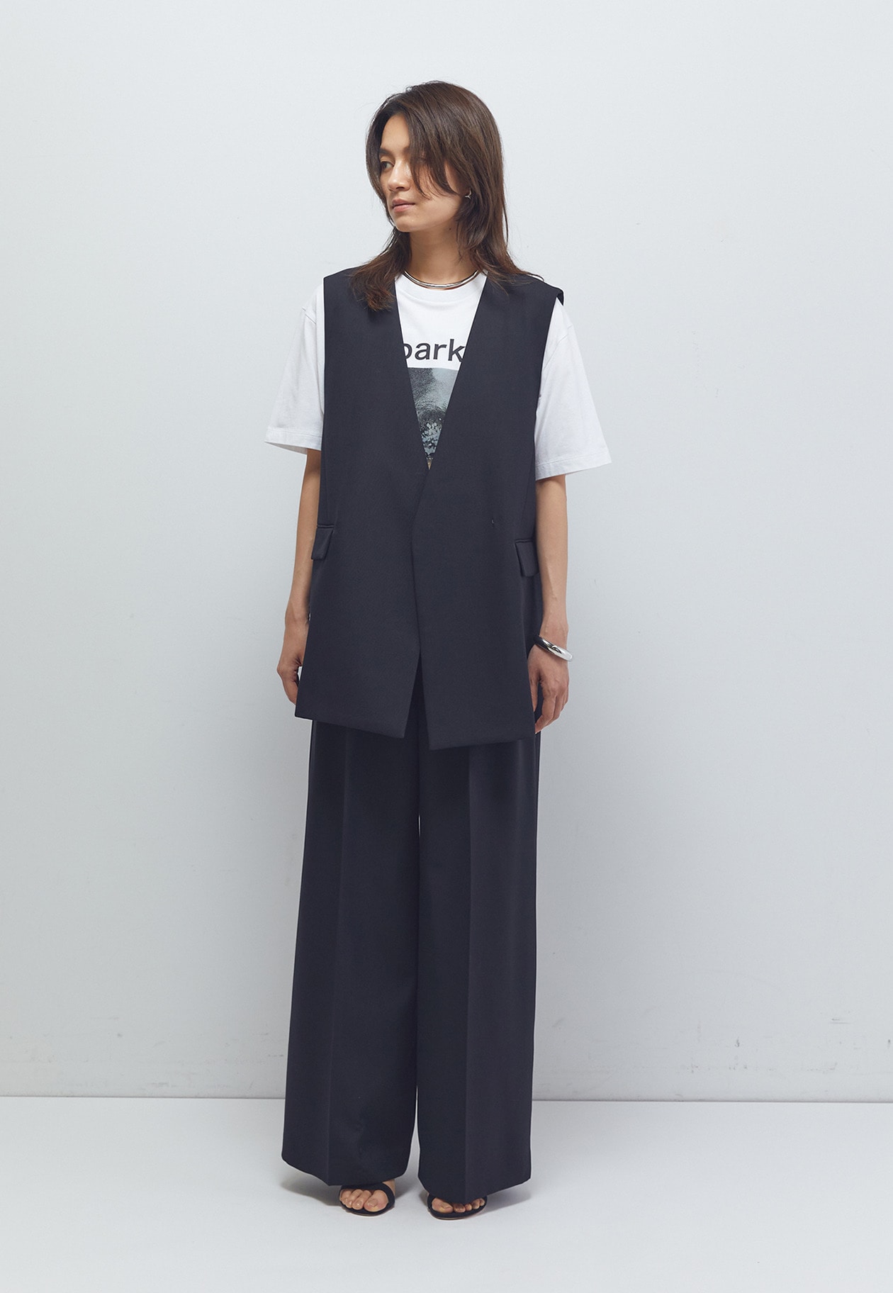 マニッシュな印象に導いてくれるノーカラージレ。